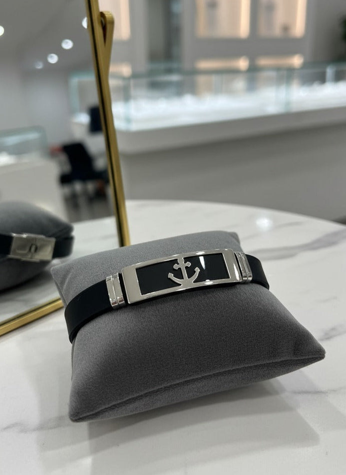 The Nautical Anchor Bracelet combines maritime inspiration with modern design. Its polished stainless-steel anchor centerpiece rests on a sleek black silicone band, representing resilience, direction, and confidence, the perfect piece for those who navigate life with purpose.