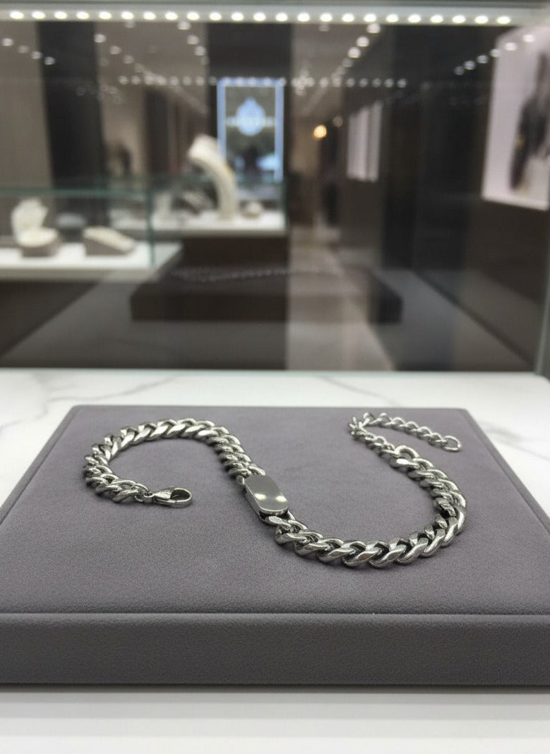 The Sterling Onyx Chain Bracelet embodies modern sophistication with a sleek Cuban link design and a centerpiece of deep onyx black. Crafted from high-grade stainless steel with a smooth matte finish, it delivers both durability and elegance, perfect for daily wear or formal occasions.